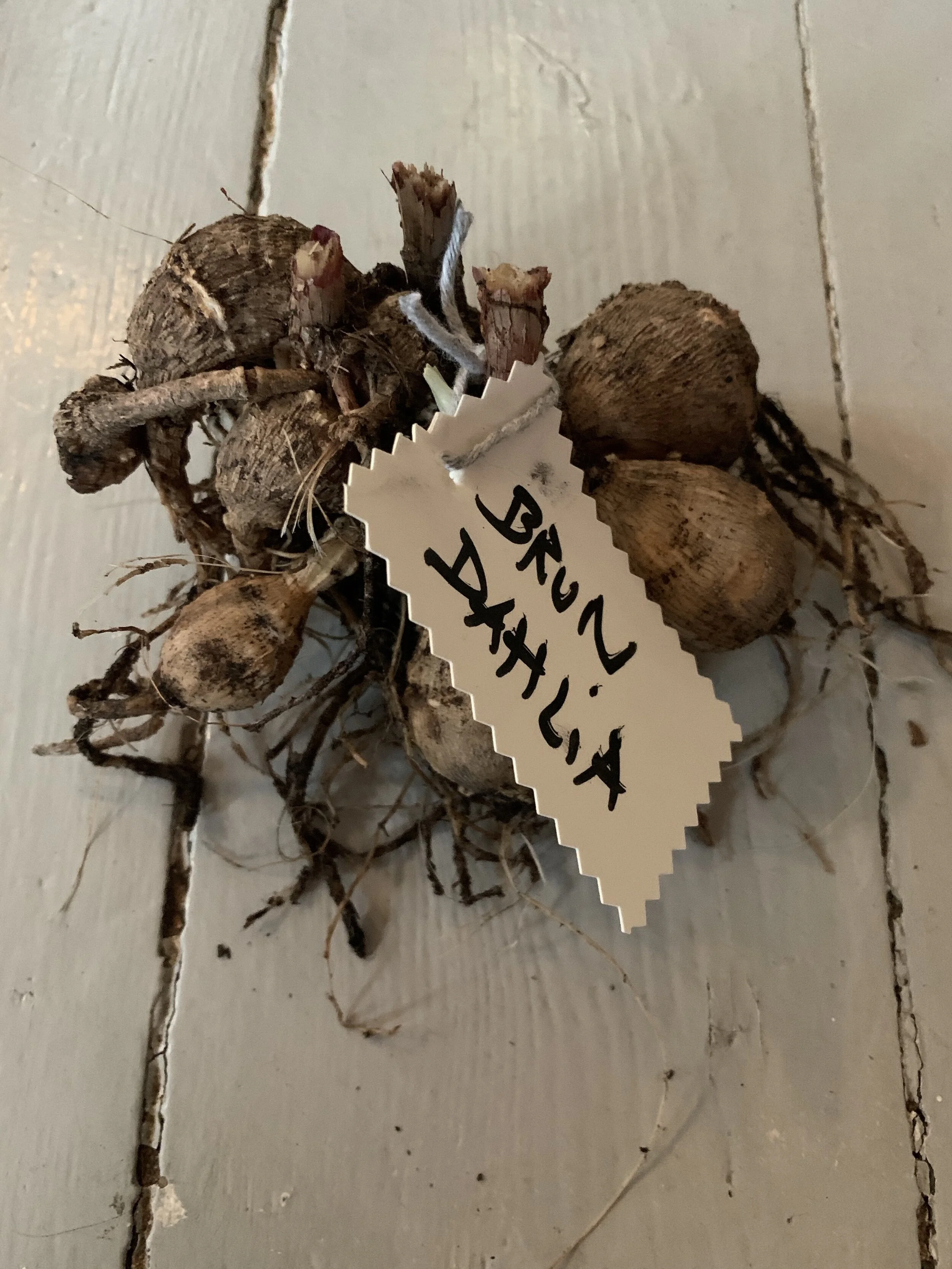 Jeg sætter altid et navn, der giver mening for mig, på blomsterløgene/knoldene der hjælper mig med, at huske hvad det er jeg har gemt hele vinteren